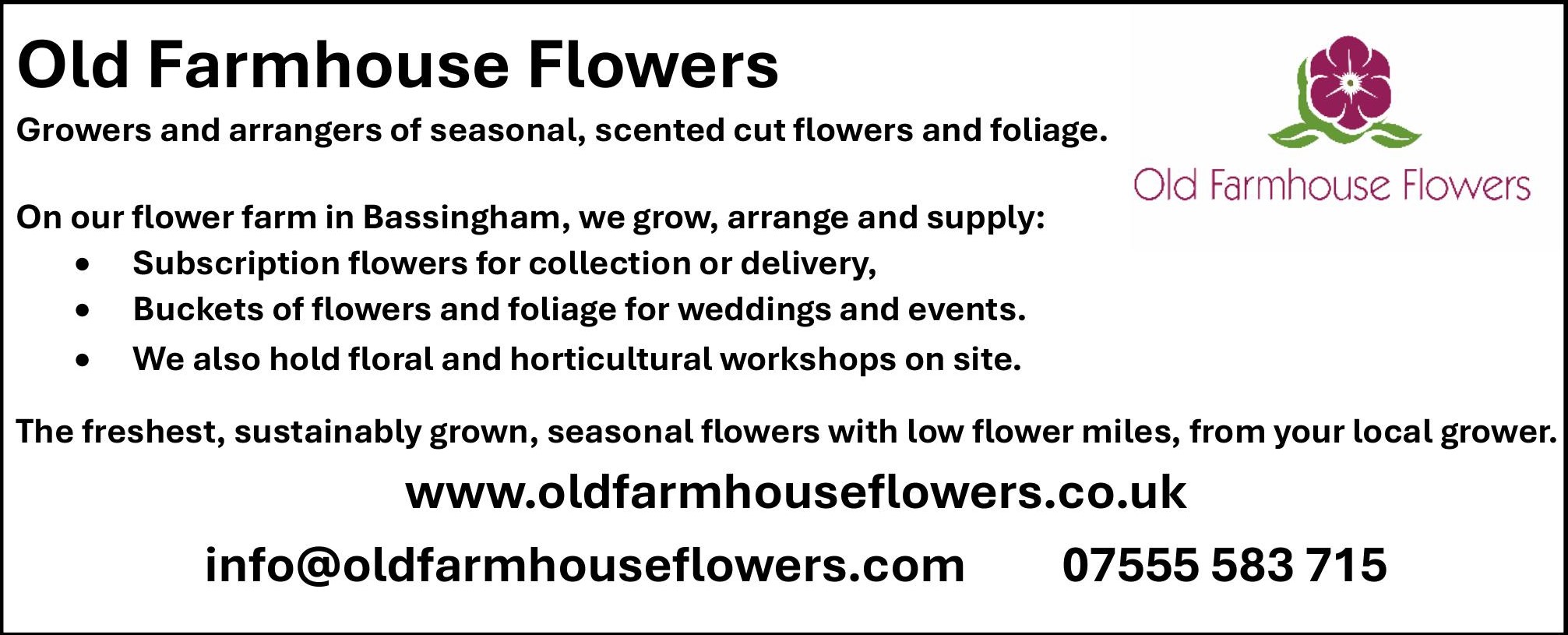 We have two sizes of adverts, sixth of a page 67mm x 67mm at a cost of £60 for a six month period (5 issues), and a quarter page which is approximately 125mm x 50mm at a cost of £65 for the same period. This includes your advert being displayed on the Witham Staple Website.